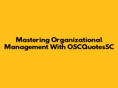 Mastering Organizational Management With OSCQuotesSC