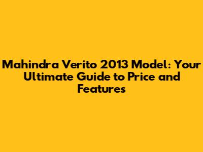 Understanding the Mahindra Verito 2013 Price Landscape