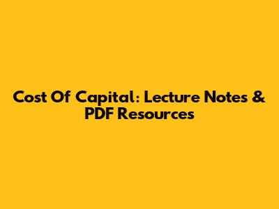 Cost Of Capital: Lecture Notes & PDF Resources