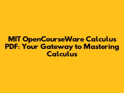 How to Effectively Use MIT OpenCourseWare Calculus PDFs