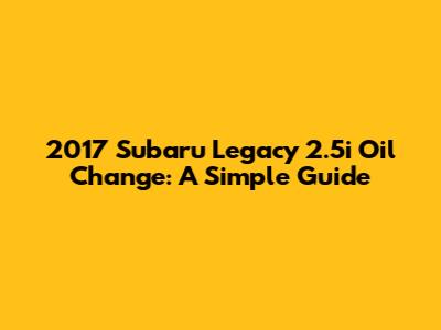 2017 Subaru Legacy 2.5i Oil Change: A Simple Guide