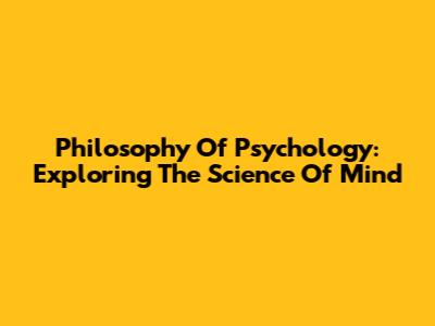 Philosophy Of Psychology: Exploring The Science Of Mind