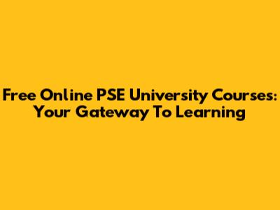 Free Online PSE University Courses: Your Gateway To Learning