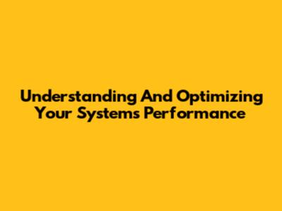 Understanding And Optimizing Your System's Performance