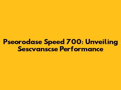 Pseorodase Speed 700: Unveiling Sescvanscse Performance