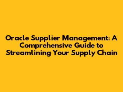 Hey everyone! Let's dive into the world of Oracle Supplier Management. We're talking about a super important aspect of any business that deals with, well, suppliers! Think of it as the backbone of your supply chain, making sure everything runs smoothly from start to finish. In this guide, we'll break down everything you need to know, from what it is, why it's crucial, how Oracle helps, and even some cool tips and tricks to make your life easier. So, buckle up, because we're about to embark on a journey through the ins and outs of Oracle Supplier Management, and by the end, you'll be a pro!