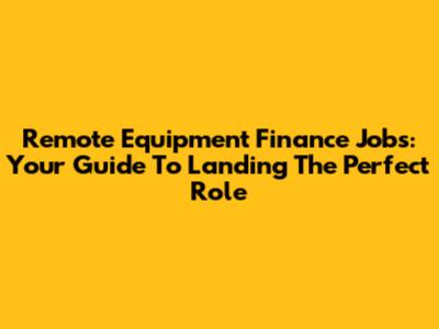 Remote Equipment Finance Jobs: Your Guide To Landing The Perfect Role