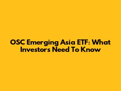 OSC Emerging Asia ETF: What Investors Need To Know