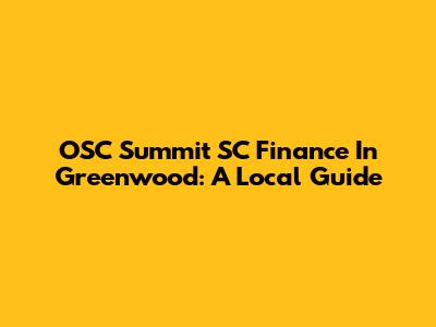 OSC Summit SC Finance In Greenwood: A Local Guide