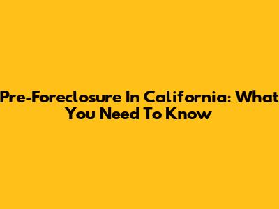 Pre-Foreclosure In California: What You Need To Know