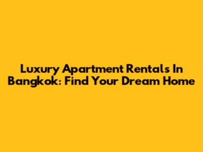 Luxury Apartment Rentals In Bangkok: Find Your Dream Home