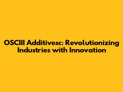 The Future of OSCIII Additivesc: Innovation and Growth