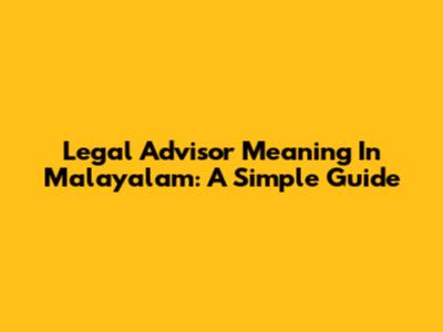Legal Advisor Meaning In Malayalam: A Simple Guide