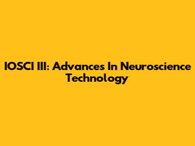 IOSCI III: Advances In Neuroscience Technology