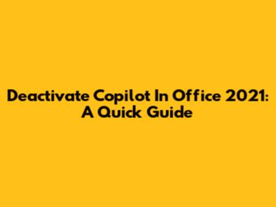 Deactivate Copilot In Office 2021: A Quick Guide