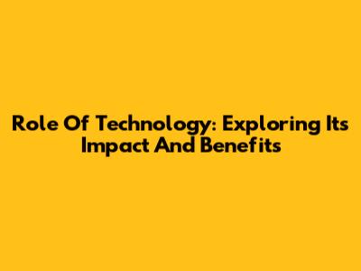 Role Of Technology: Exploring Its Impact And Benefits