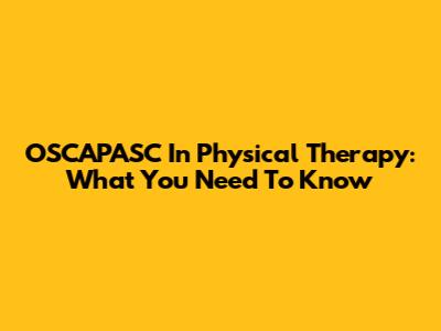 OSCAPASC In Physical Therapy: What You Need To Know