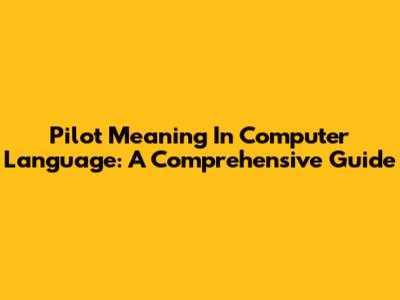 Pilot Meaning In Computer Language: A Comprehensive Guide