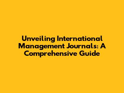 Unveiling International Management Journals: A Comprehensive Guide