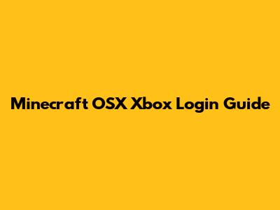 Minecraft OSX Xbox Login Guide