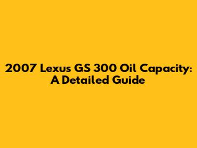 2007 Lexus GS 300 Oil Capacity: A Detailed Guide