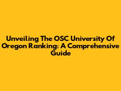 Unveiling The OSC University Of Oregon Ranking: A Comprehensive Guide