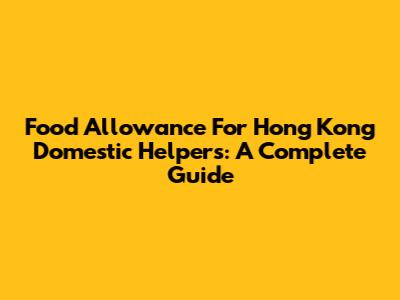 Food Allowance For Hong Kong Domestic Helpers: A Complete Guide