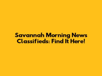 Savannah Morning News Classifieds: Find It Here!