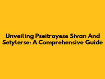 Unveiling Pseitroyese Sivan And Setylerse: A Comprehensive Guide