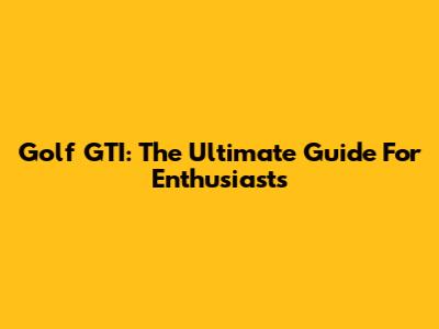 Golf GTI: The Ultimate Guide For Enthusiasts