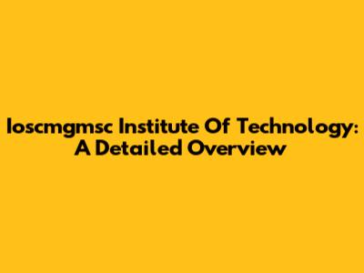Ioscmgmsc Institute Of Technology: A Detailed Overview