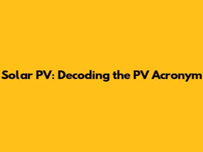 What PV Stands for and Why It Matters