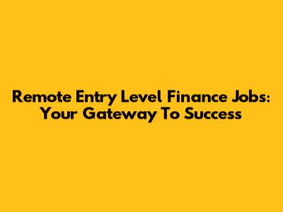 Remote Entry Level Finance Jobs: Your Gateway To Success
