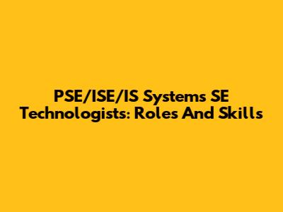 PSE/ISE/IS Systems SE Technologists: Roles And Skills
