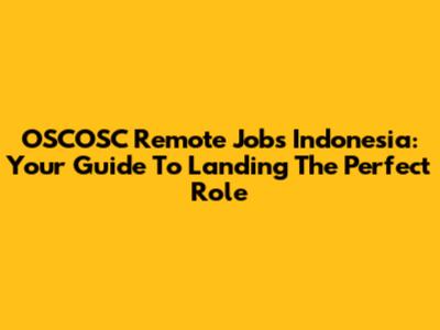 OSCOSC Remote Jobs Indonesia: Your Guide To Landing The Perfect Role