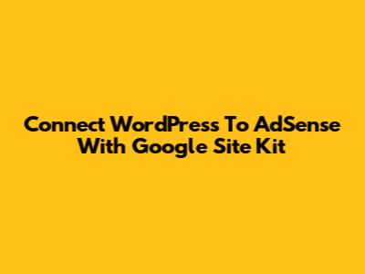 Connect WordPress To AdSense With Google Site Kit