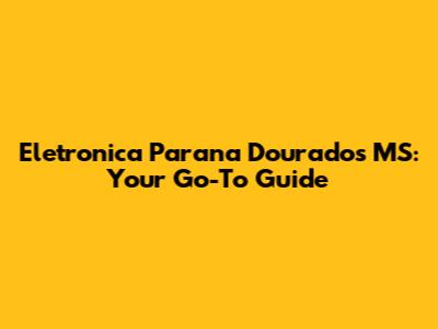 Eletronica Parana Dourados MS: Your Go-To Guide