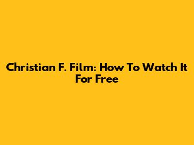 Christian F. Film: How To Watch It For Free