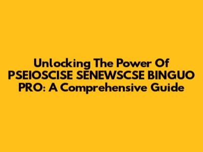 Unlocking The Power Of PSEIOSCISE SENEWSCSE BINGUO PRO: A Comprehensive Guide