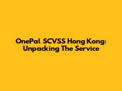 OnePal SCVSS Hong Kong: Unpacking The Service