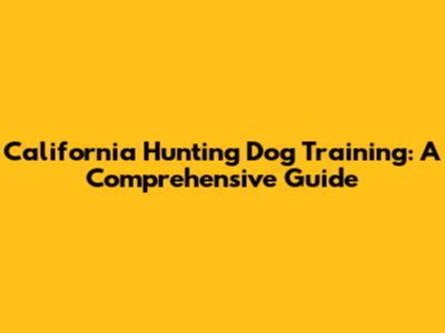 California Hunting Dog Training: A Comprehensive Guide