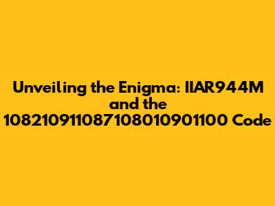 Hey everyone! Ever stumbled upon a series of numbers or a cryptic code and wondered what in the world it meant? Well, today, we're diving deep into the fascinating world of IIAR944M and the 108210911087108010901100 code. It's like we're going on a treasure hunt, only instead of gold, we're after knowledge. The core of our exploration centers around deciphering IIAR944M, which is more than just a random jumble of letters and numbers; it's a key. A key that unlocks hidden information or, at the very least, a specific concept or identifier. Understanding such codes is paramount in various fields, offering a unique lens through which we can understand intricate systems and specialized terminologies. From technology and mathematics to secret societies and intelligence, decoding this cipher is about to uncover layers of meaning hidden beneath the surface. Now, let's address the numerical sequence – 108210911087108010901100. At first glance, it might look like a random set of digits, but in many contexts, especially within the scope of our subject matter, it represents much more than simple arithmetic. It could very well be a unique identifier, a timestamp, a reference code, or, perhaps, a set of instructions. Breaking down these numerical sequences allows us to analyze their function and context. It’s like we have all the pieces of a puzzle, and it's our job to put them together. The interplay between the IIAR944M key and the 108210911087108010901100 sequence is what forms the heart of our investigation. Are they related? Do they point to the same thing? These are the questions we need to answer to successfully unlock the secrets behind this code. Prepare yourselves, because this is going to be an exciting ride!