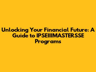 Hey everyone! Ever felt like the world of finance is a complex maze? Well, you're not alone. Figuring out the best path to financial success can be tricky, but thankfully, IPSEIIIMASTERSSE finance programs are here to help. Whether you're a recent grad, a seasoned professional looking to level up your skills, or someone just starting to dip their toes into the financial waters, there’s likely a program out there that's perfect for you. This guide is designed to break down everything you need to know about these programs, helping you make informed decisions and get closer to achieving your financial goals. We'll explore what these programs offer, who they're for, and how they can supercharge your career. So, grab a coffee, and let's dive in! We are going to explore the different types of programs available, the benefits of pursuing these programs, and some tips on how to choose the right one for your specific needs.