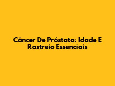 Câncer De Próstata: Idade E Rastreio Essenciais
