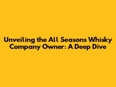 The All Seasons Whisky Company Owner: A Profile