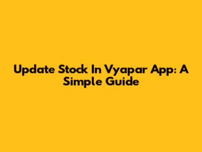 Update Stock In Vyapar App: A Simple Guide