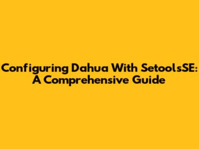 Configuring Dahua With SetoolsSE: A Comprehensive Guide