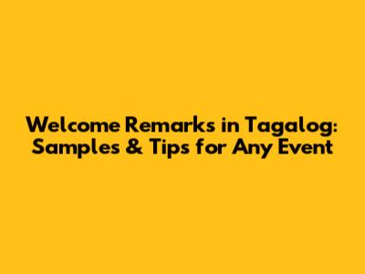 Sample Welcome Remarks in Tagalog