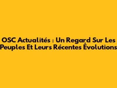 OSC Actualités : Un Regard Sur Les Peuples Et Leurs Récentes Évolutions